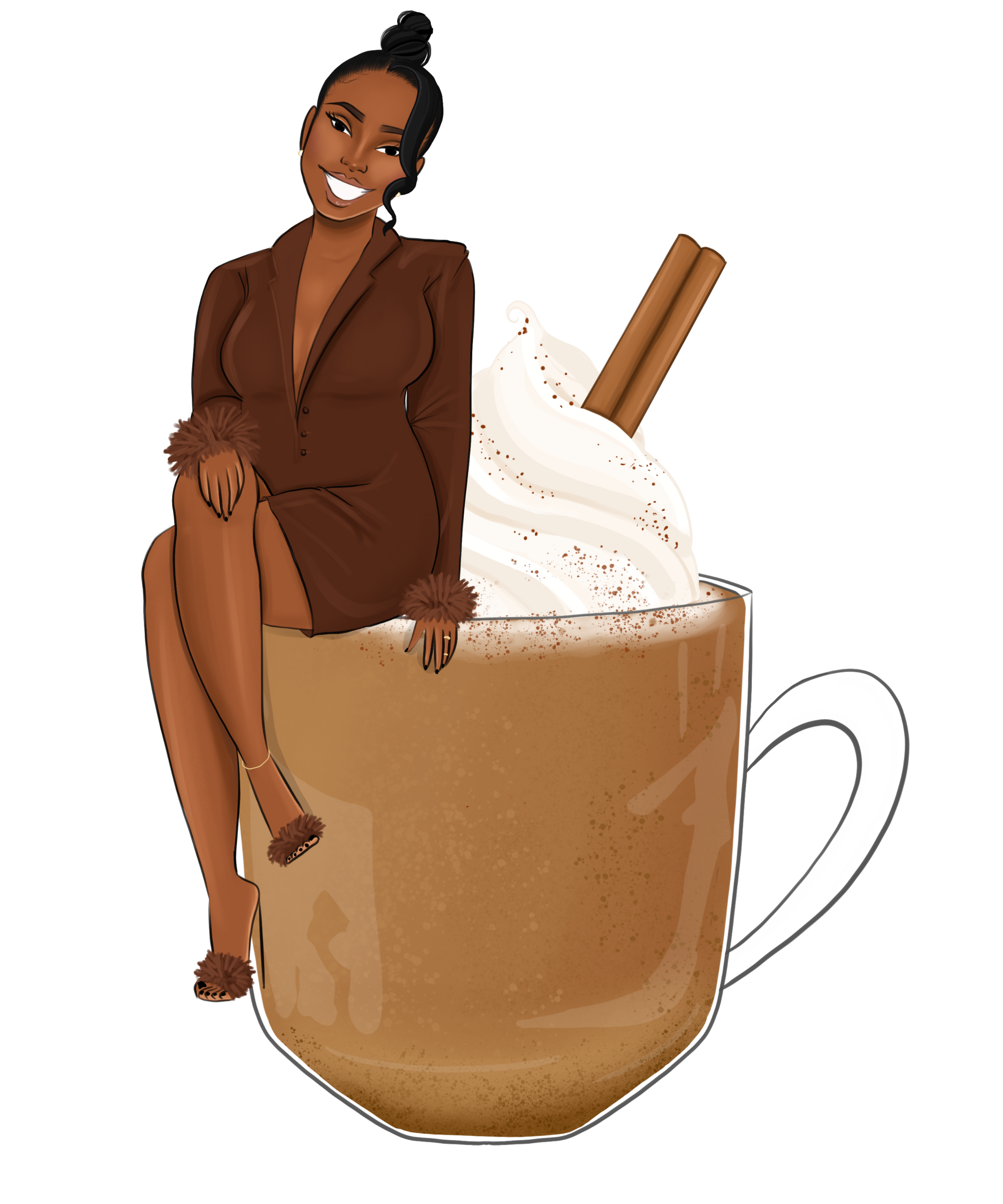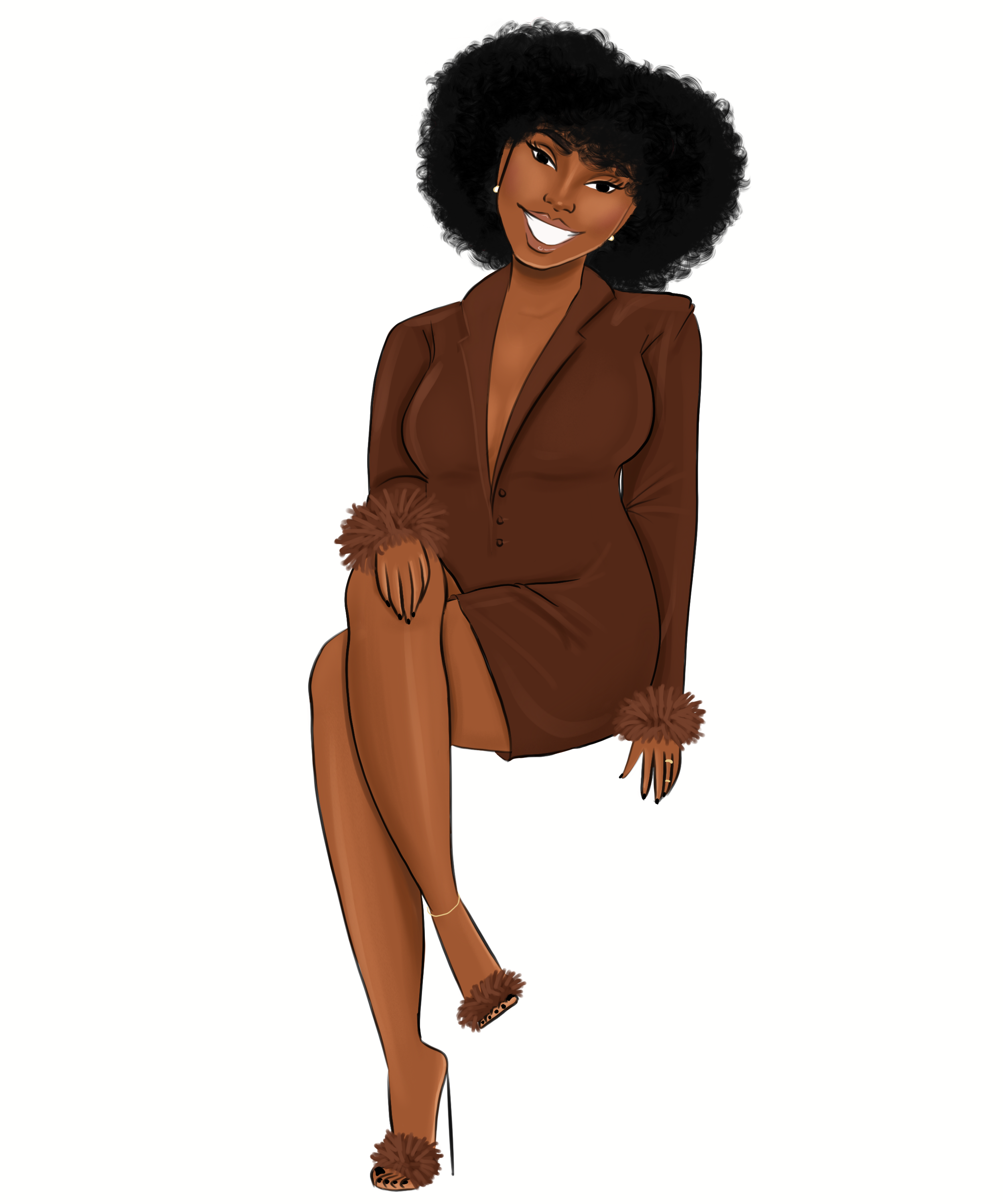 Brown Coat Dark Skin Curvy