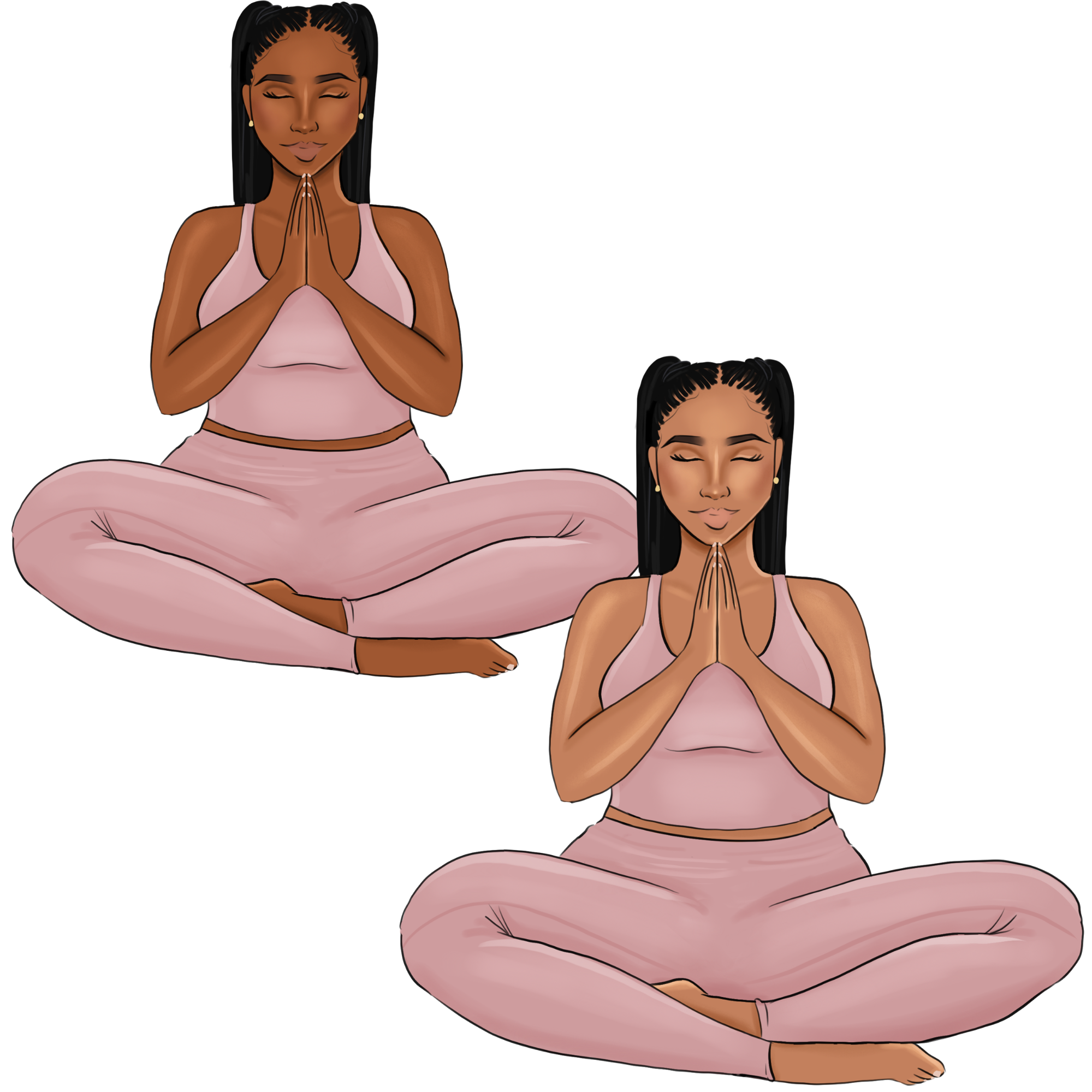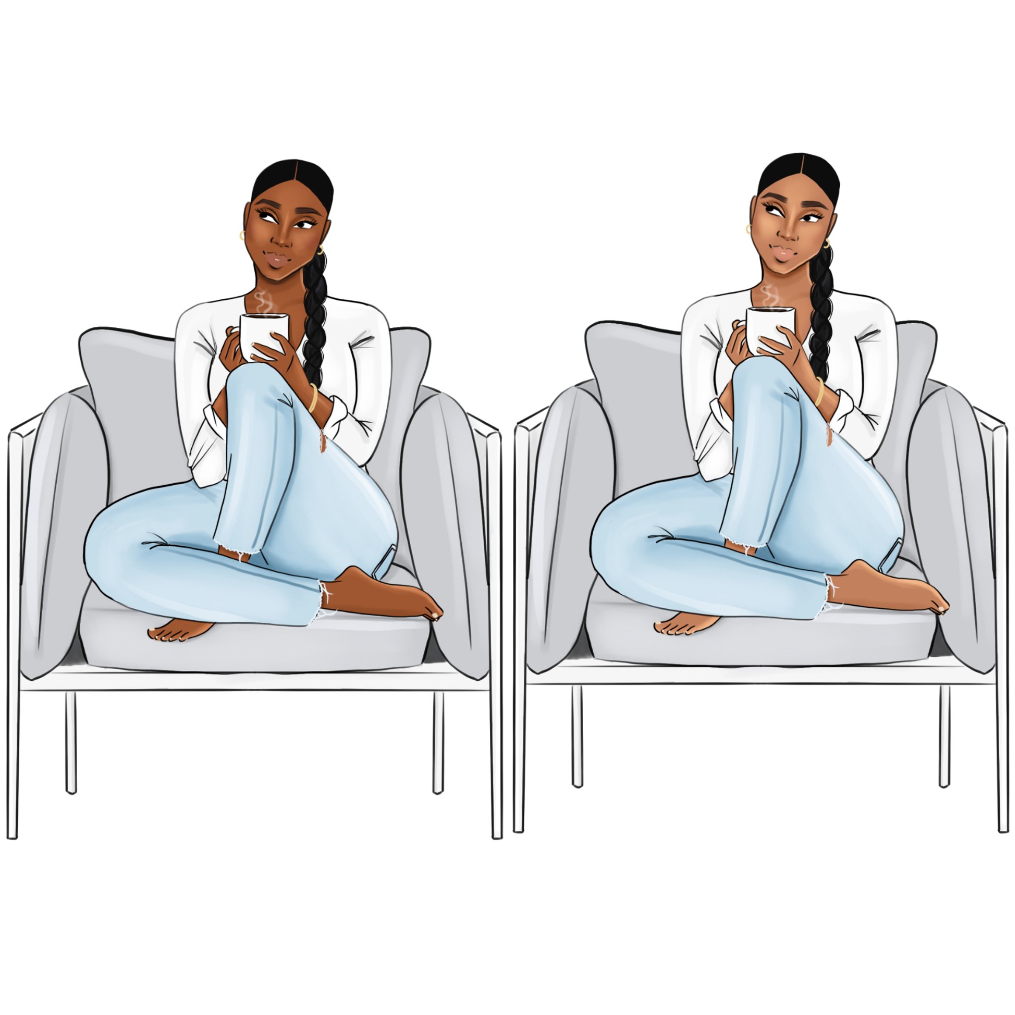 You’ll receive 5 light skin ladies with both faces and faceless options. The illustrations comes with transparent background.