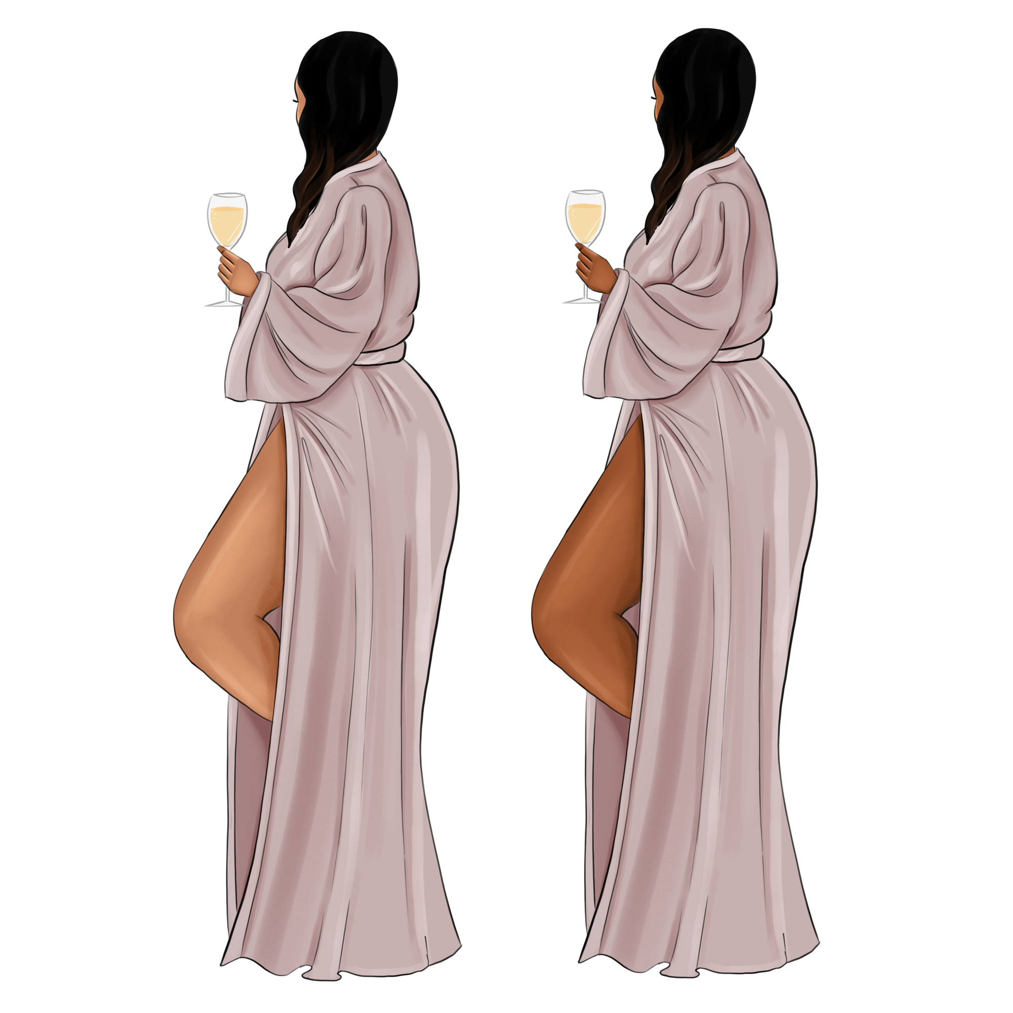 You’ll receive 5 dark skin ladies with both faces and faceless options. The illustrations comes with transparent background.